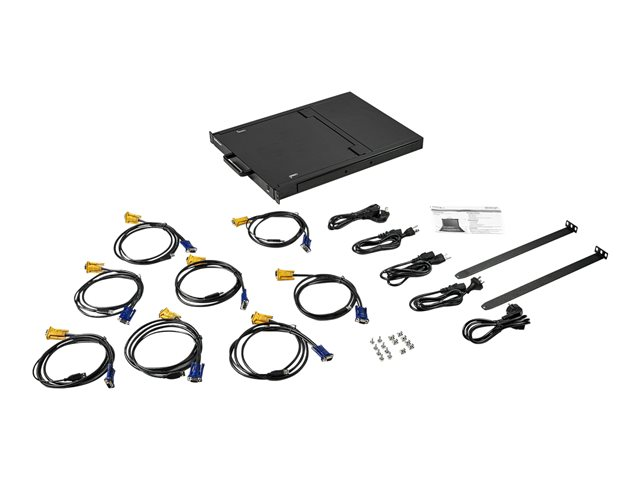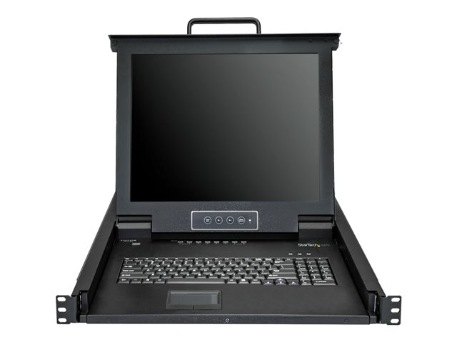 StarTech.com 8-ports rackmonterad KVM-konsol med 1,8 m kablar - Integrerad KVM-switch med 17-tums LCD-skärm - 1U LCD KVM-låda - OSD KVM - Hållbar 50 000 MTBF - USB + VGA-support - KVM-konsol med omkopplare för tangentbord/video/mus - 8 portar - USB - 17" - kan monteras i rack - 1280 x 1024 @ 60 Hz - 250 cd/m² - 1000:1 - 5 ms - VGA - svart - 1U RKCONS1708K
