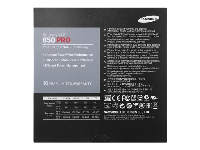 Samsung 850 PRO MZ-7KE512BW - SSD - krypterat - 512 GB - inbyggd - 2.5" - SATA 6Gb/s - buffert: 512 MB - Self-Encrypting Drive (SED), TCG Opal Encryption 2.0 MZ-7KE512BW