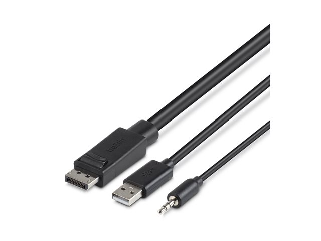 Belkin Secure KVM Combo Cable - Kabel för tangentbord/mus/video/ljud - TAA-kompatibel - USB, minijack, DisplayPort (hane) till mini-phone stereo 3.5 mm, USB typ B, DisplayPort (hane) - 1.83 m - svart F1D9019B06T