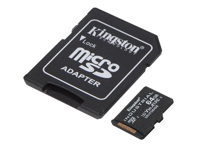 Kingston Industrial - Flash-minneskort (microSDXC till SD-adapter inkluderad) - 64 GB - A1 / Video Class V30 / UHS-I U3 / Class10 - mikroSDXC UHS-I