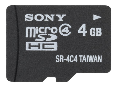 Sony - Flash-minneskort (adapter, microSDHC till SD inkluderad) - 4 GB - Class 4 - microSDHC - för Action Cam-HDR-AS10, AS15; Cyber-shot DSC-H100, HX10, HX200, QX30; Handycam HDR-CX740 SR4A4