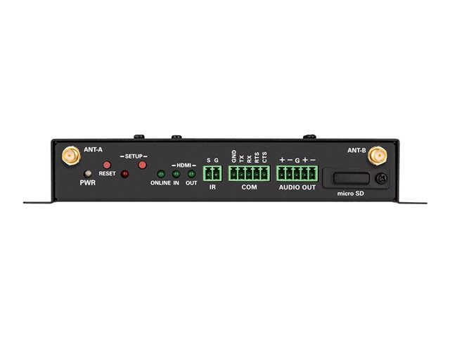 | Terminaler | (1) x HDMI-ingång - 19 pin HDMI typ A (1) x HDMI-utgång - 19 pin HDMI typ A (1) x USB 2.0 - 4 pin USB typ A (1) x USB 3.0 - 9 pin USB Type A (1) x USB 3.0 - 9 pin USB typ B (2) x nätverk - RJ-45 (1) x infraröd utgång - terminalblock med 2 stift (1) x seriell - terminalblock med 5 stift (1) x balanserade ljudutgångar - terminalblock med 5 stift - stereo |