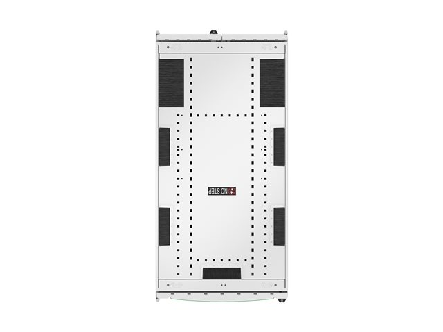 | Egenskaper | Integrerad kabelhantering, låsbara dörrar, borttagbara sidopaneler, perforerad dörr (80%), 2 mm EIA-monteringsskenor, 270° dörröppning |